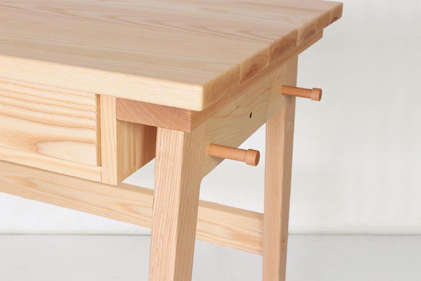 來自北美再生林的梣木 (Ash) 同為北美硬木,亦是森手木工 偏好的主材,又稱為白蠟木。梣木密度與紅橡木相近,早期 美日職棒所用的木製球棒有一部分是由梣木製成的,其穩定 堅韌、耐衝擊的特性更是家具不可多得的優良材料。梣木色 澤呈現淡鵝黃色,木材紋路通直優美、層次分明,也因為色 澤較淡的緣故,塗裝色彩變化豐富。 梣木 北美赤楊木 來自北美再生林的赤楊木 (Alder) 為闊葉樹,木 紋細緻,木材硬度中等,性質安定。本身最大的 優點為其膠合性強、需要的膠量少故環保性更高。 木紋方面紋理均勻平整,與櫻桃木類似。考量材 質平整性,赤楊在森手通常都採用指接的方式製 作,多應用於櫃類及其層板。 紐西蘭松木 紐松 (Radiata pine) 亦稱為輻射松,為針葉林種, 木材呈淡黃色。生長期相對較短,應用非常廣泛, 是聯合國認證環保木材。紐松雖然屬於軟木,但 強度適中、質地輕巧,性質穩定不易翹曲。森手 通常應用於抽屜側板、床板、洞洞板等。紐松價 格相對經濟實惠,易染色塗裝,是小型訂製品的 好選擇。 北美梣木 光麟紋 閃電紋 深淺變化 赤楊木 Alder 比重: 0.45-0.53 平均硬度: 4-5 紐松 Radiata pine 比重: 0.4-0.5 平均硬度: 3-4 ***** ***** **** ****** 梣木 Ash 比重: 0.67-0.69 平均硬度: 6-7 ******* *** 紐 木松蘭西 北美赤楊木 硬度標示以《木作用 世界木材事典》為基礎,森手師傅經驗輔以微調 6
