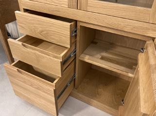 MO-515-85 寬 85 x 深 45 x 高 90 cm $31,200 微風滑門半高櫃 OAK 北美紅橡木 MO-515-110 寬 110 x 深 45 x 高 90 cm $38,600 W85 雙滑門 (實木門) W110 雙滑門 (玻璃門) MO-515-150 寬 150 x 深 45 x 高 90 cm $46,500 W150 三滑門 (玻璃門) 餐櫃 單一門片可客製為實木或玻璃門,價格另計 46