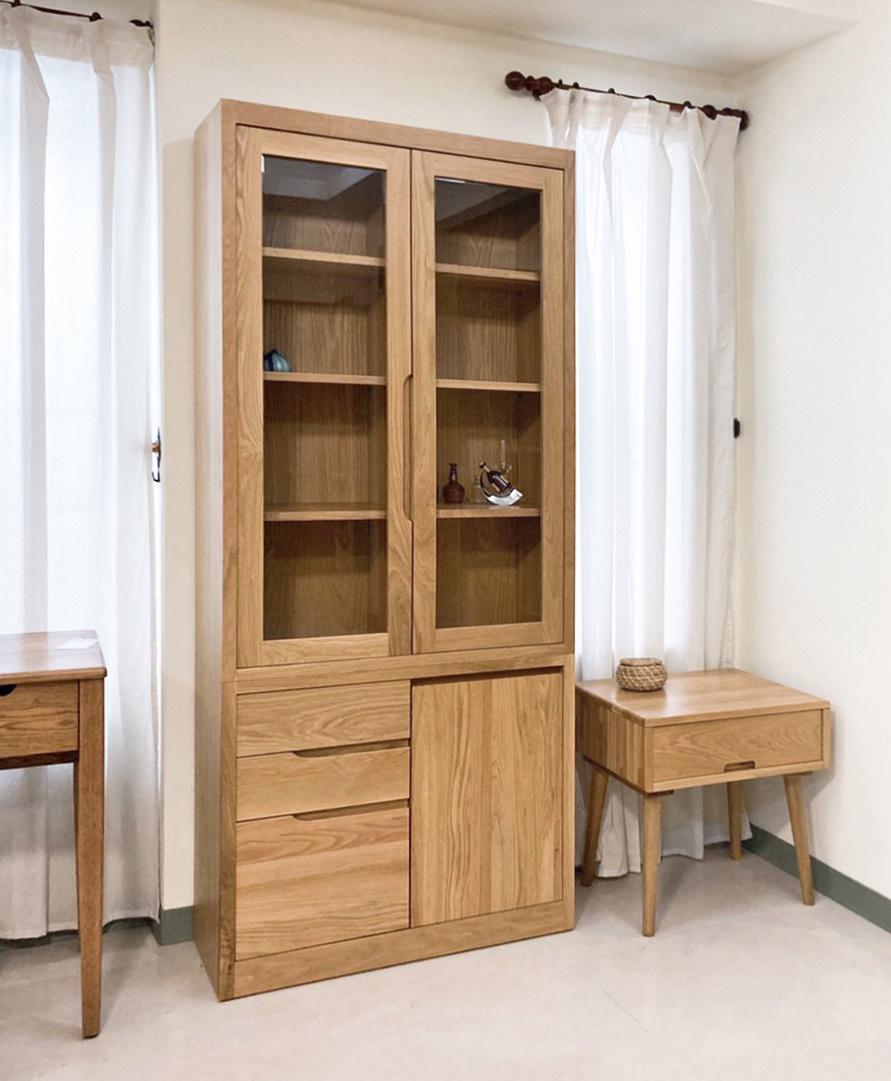 日出內盒 北美赤楊木 +松木 寬 36.8 x 深 33.5 x 高 32.8 cm MO-130-2A $8,200 單門 雙抽 MO-130-A $6,100 微風滑門玻璃高櫃 OAK 北美紅橡木 + 木心板貼實木皮 MO-516-85 寬 85 x 深 40 x 高 176 cm $39,400 層板為活動式 書櫃 80