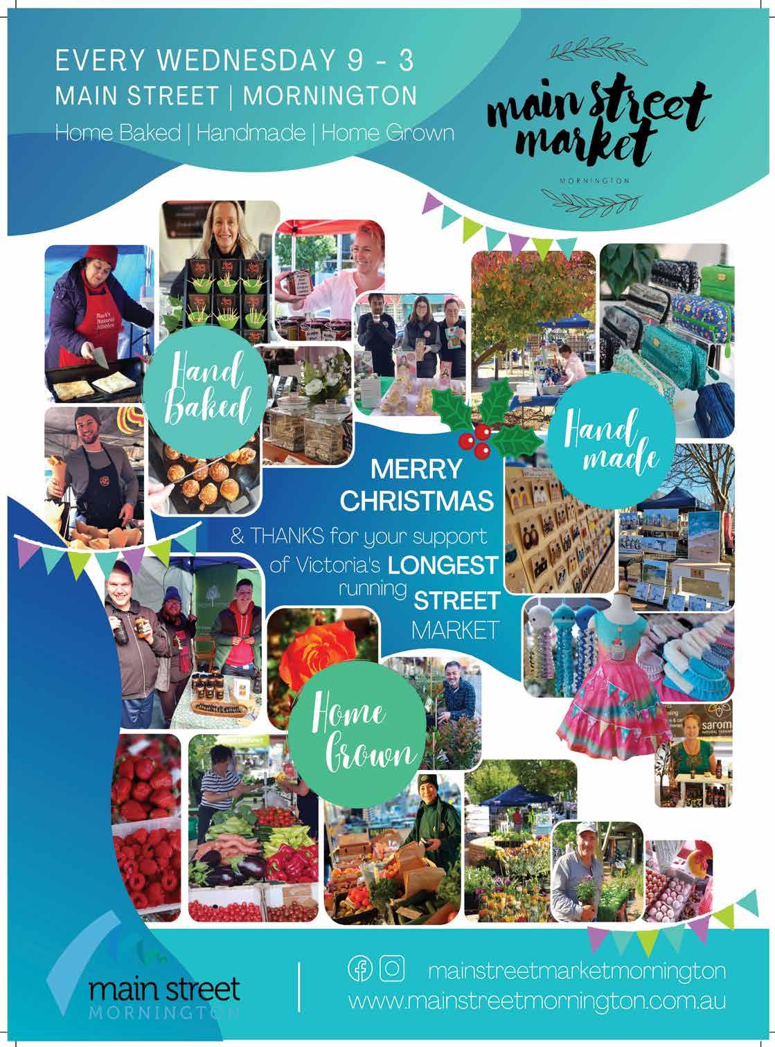 PAGE J Mornington News 6 December 2022 Love and Support Local Aldi 132 534 AVY Nails 5975 8239 Baby Goods Mornington 5977 0966 eTechFix 0419 016 579 Freechoice 0432 545 399 Inside Story News & Lotto 5975 5849 Just Wiggit 5909 8848 Mornington Ink 5975 5366 Mornington Medical Centre 5976 3600 Mornington PharmaSave Pharmacy 5975 4344 Mornington Village Bakery 5923 0965 Nando’s 5975 4959 Phat Yaya’s 5973 5739 Smart Cuts & Color 5976 4474 TAO Massage 5973 5804 The Reject Shop 5977 1293 ATMX OUR RETAILERS OPEN EVERY DAY 241 Main St, Mornington (03) 5975 5702 morningtonvillagecomau DECEMBER COMMUNITY EVENTS CALENDAR The next Community Events Calendar will be published 17th January 2023. Email your free, 40 word, listing to communityevents@mpnews.com.au by 11th January 2023. COMMUNITY EVENTS CALENDAR SPONSORED BY: