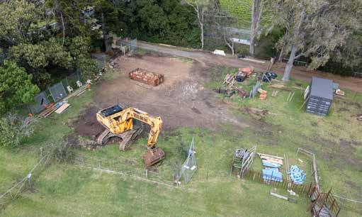 “Salvaged materials including bricks, timber, windows, doors, ceiling roses and other decorative elements are being stored on-site.