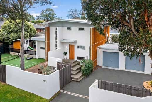 Designed with parents in mind, the firstfloor master retreat boasts high ceilings and balcony access, exuding a sense of luxury with its ensuite and spacious walk-in robe. Below, three additional bedrooms and two bathrooms complement a third living area,