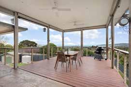 walk-in pantry. A wrap-around deck expands family fun to the outdoors, where views of the in-ground solar heated swimming pool below are balanced with an open and airy aspect towards the bay.