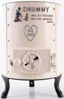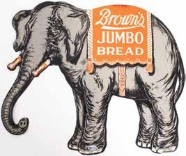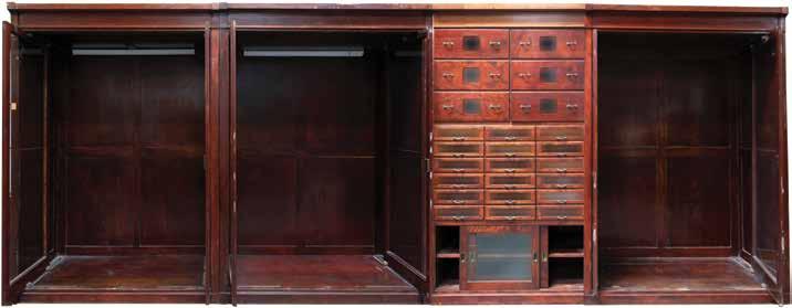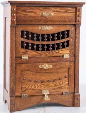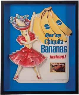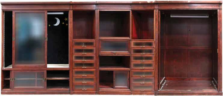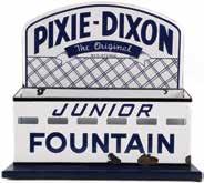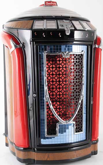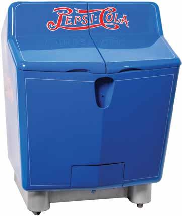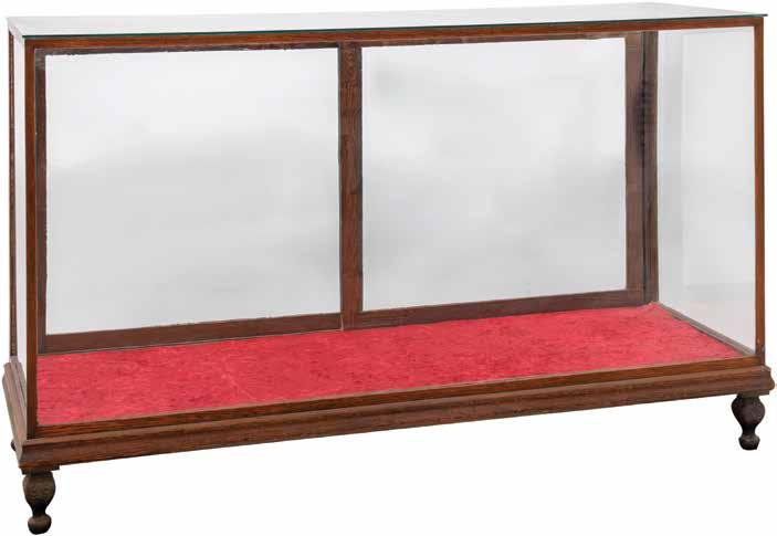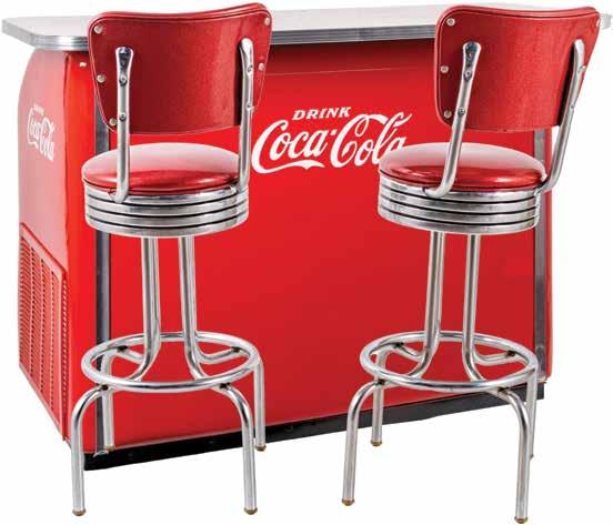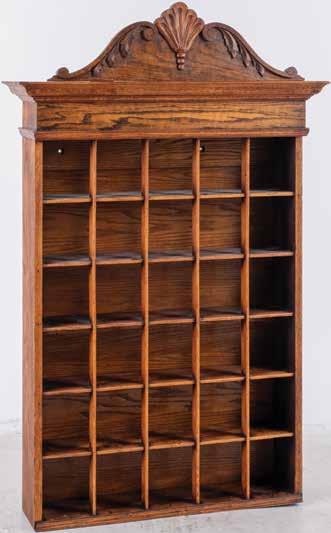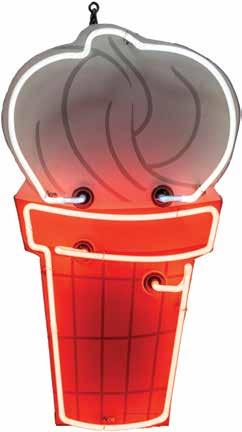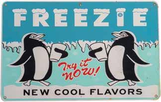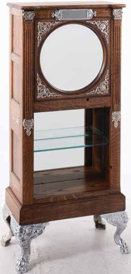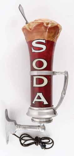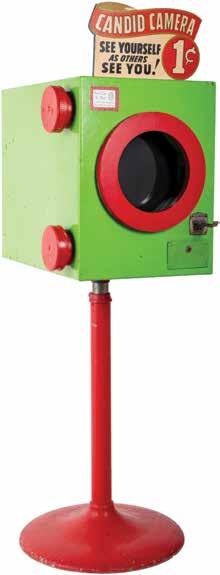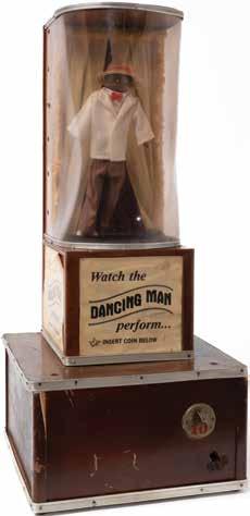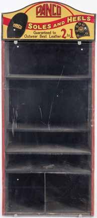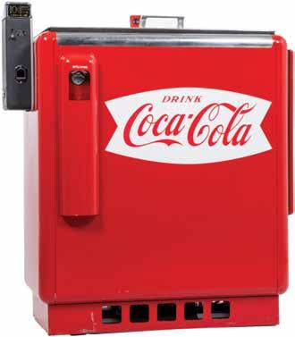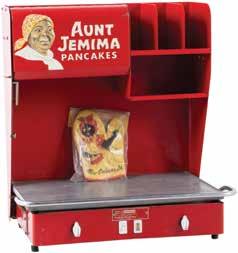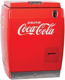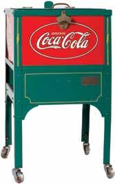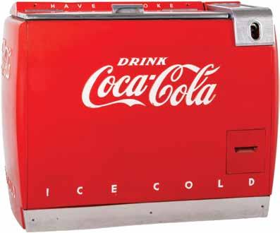 54” x 31” x 106” A figural display cabinet or display feature in the form of an oversized 40s refrigerator. Wood construction with metal detail styling, internal shelving, and front load design. CONDITION: Showing light wear from transporting and handling. Has interior shelving, working front door, no breaks or repairs. This is not a standard shippable item and will require 3rd party shipping or pickup arrangements to be made. (Very Good). 1,500 - 3,000
