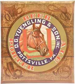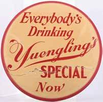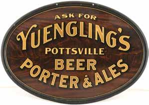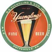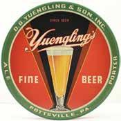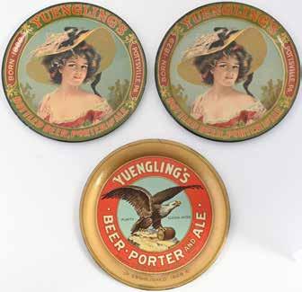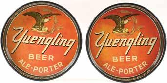 Each: 13” Dia. C. 1930s. D.G. Yuengling & Son, Inc., Pottsville, Pennsylvania Yuengling Beer eagle trays. “Manufactured by Beach” marked on bottom rim. CONDITION: Both are solid examples with light scratching. Has some red fade to the face and backside of the tray, which is typical. (7.5). 300 - 600