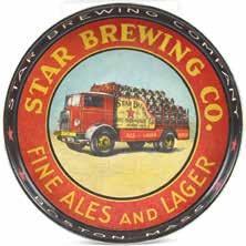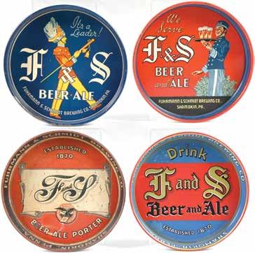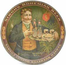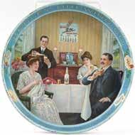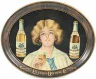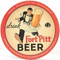 12” Dia. C. 1930s. Pittsburgh Brewing Co., Pittsburgh, Pennsylvania. One of the best graphics ever produced for a beer tray, showing the running waiter. CONDITION: Solid, clean example. The face has a couple very minor scuffs, one in the “O” in “Fort” and some other very minor marks. Some scratching to the outer rim and other miscellaneous scuffs. (9.0). 400 - 800