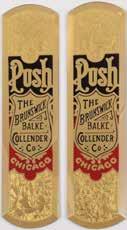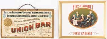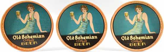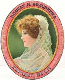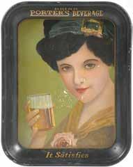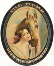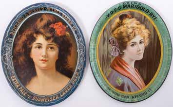 EA: 13 - 3/4 X 1 - 1/8” X 16 -1/2” (A) Shows a beautiful woman with the iconic horse head. The outer edges depict cherubs and horse bridles, reading “Portland Brewing Co. Edelbrau, Portland, Oregon” and maker marked “Copyrighted 1905 Chas Ehlan”. Normal edge wear throughout. (B) Wieland’s Extra Pale Brewery’s Own Bottling, showing the graphic girl drinking the product, adorned in her bonnet. The tray is labeled “John Wieland Brewery, San Francisco, California’s Best Beer”. Maker marked “H.D. Beach Co. Coshocton, Ohio”. 400 - 1,200
