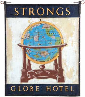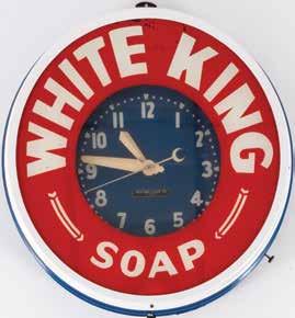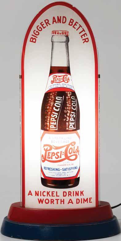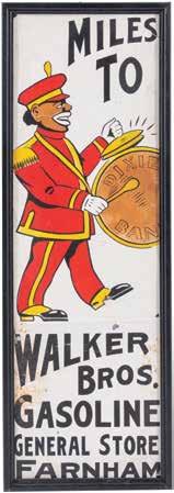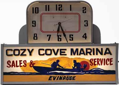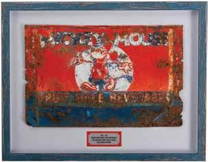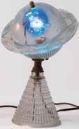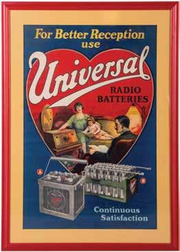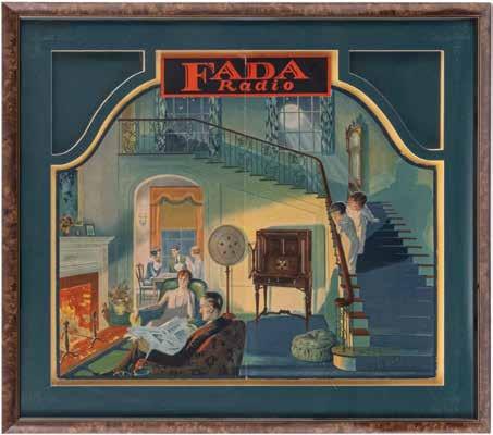 14 - 5/8” X 9 - 1/2” X 17 - 1/2” CONDITION: A reverse painted front sign, showing a family at home enjoying their Majestic Radio with about 90% of the original decal on the front. The center portion of the sign is a light-up display. It shows a rotating world, which is currently not operational. It has an all original can, frame in the front, and cord. It shows areas of wear to the original wood frame. There are no areas of lifting to the reverse glass front. (8.0). 1,000 - 2,000