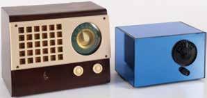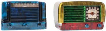 Emerson Catalin radio showing surface scratches from handling. No cracks or repairs. Emerson decal is 50%. (B) Spartan 557 blue mirrored radio. No cracks or repairs, original knobs and dial. Cabinet and trim have small scratches and imperfections consistent with age and use. Set is being sold as a “non-working” vintage electronic device that should be gone over by a qualified technician prior to operation (Good).