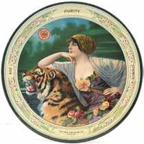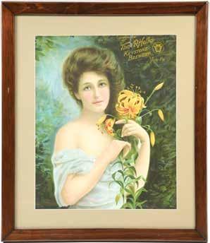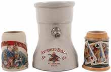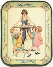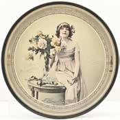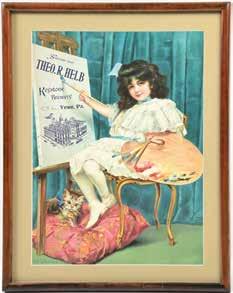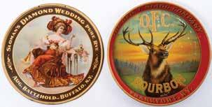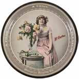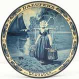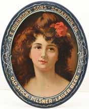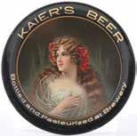 1017 - DAEUFER’S BREWING CO. BEER TRAY 12 - 1/4” Dia. Pre-Prohibition, c. 1910s. Daeufer’s Brewery, Allentown, Pennsylvania. Beautiful Dutch girl scene carrying the Daeufer’s labeled bottles of beer. CONDITION: Beautiful example with solid, bright paint. Has some minor wear and one scratch to the left side, just below 9 o’clock in the water. (8.5). 300 - 600