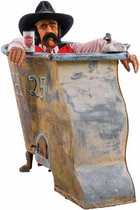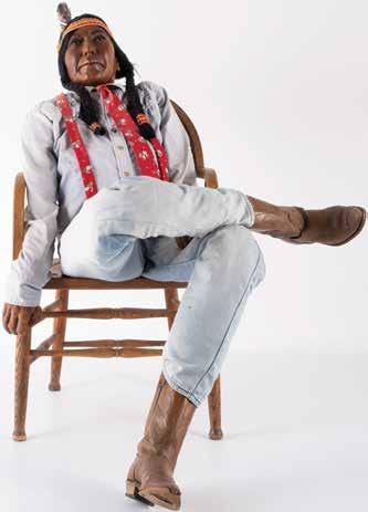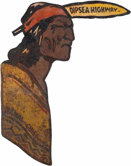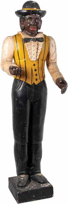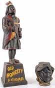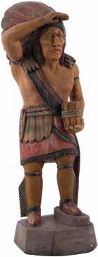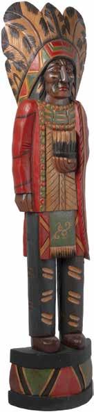 20” x 18” x 74”. C. 1980. CONDITION: It shows all original paint to the wood carving. A standing Native American brave holding a bundle of cigars, showing just light wear, some areas of scuffing and surface scratching, primarily to the base. This is not a standard shippable item and will require 3rd party shipping or pickup arrangements to be made. (Very Good - Excellent). 500 - 1,500