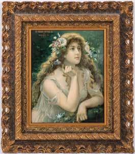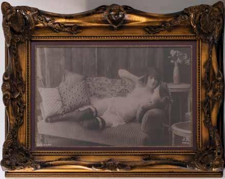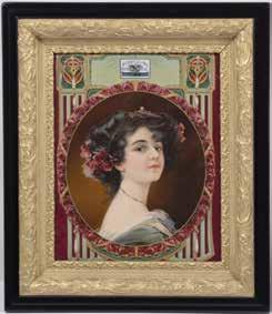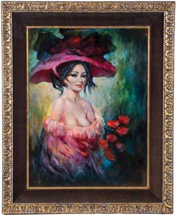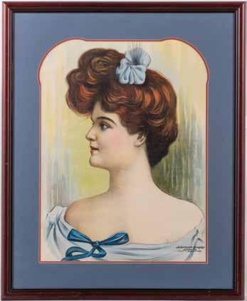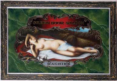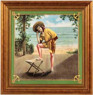 42 - 1/2” x 3” x 52”. A single-sided painting on wood of a beautiful girl, typical of saloon era paintings of the late 19th/early 20th century. CONDITION: It shows some light areas of scuffs to the outside edges. There is one small scuff to the young lady’s nose. Framed in a period frame with gilt edges. This is not a standard shippable item and will require 3rd party shipping or pickup arrangements to be made. (9.0).