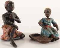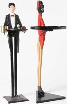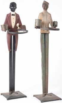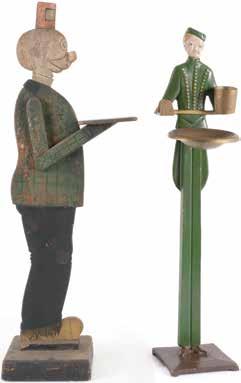 LARGEST: 19” X 17” X 39” CONDITION: (A) A business card or drink display of a beautiful woman in a fancy gown. Composition construction, showing very little signs of wear. It has painted eyes, holding a tray that could be a multitude of uses. (9.0). (B) A ceramic display of a nude bathing beauty woman. It shows light areas of wear, with no chips, cracks, or repairs. (9.0). (9.0). 500 - 1,500