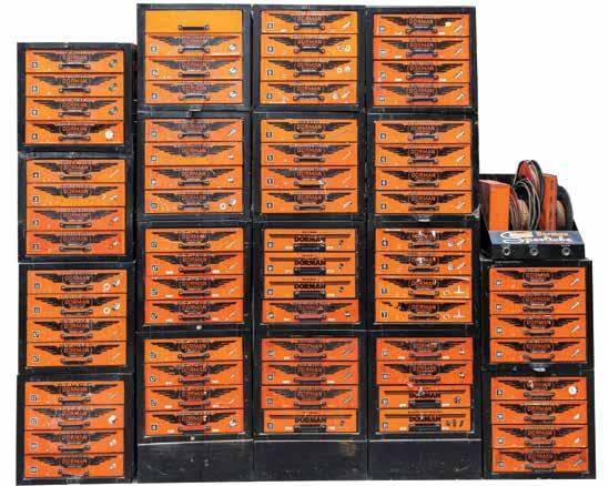 30” x 34 - 1/2” x 74 - 1/2”. CONDITION: Showing a 7-locker system, with some denting to the doors from use. All doors have coin system for locking. Some surface rust to the bottom edges, and overall some paint loss to the painted surfaces. This is not a standard shippable item and will require 3rd party shipping or pickup arrangements to be made. (Good). 400 - 800
