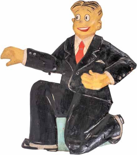 14” x 13” x 44” CONDITION: It shows original clothing, shoes, paint to the composition body and hands. Most likely a window store display, or possibly a prop. This is not a standard shippable item and will require 3rd party shipping or pickup arrangements to be made. (Very Good). 500 - 1,000