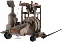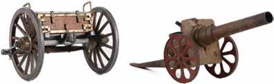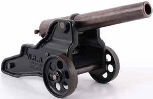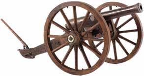 29” X 13 - 1/2” X 11 - 1/2” CONDITION: Most likely a hand-built model of a cannon. It shows a wood cart with wood wheels, cast iron barrel, and no maker marks. It definitely has some age, most likely at the turn of the 20th century. (Good - Very Good). 500 - 1,500