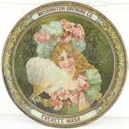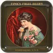 4 - 1/4” Dia. Pre-Prohibition. Fink’s Prize Beers, Harrisburg, Pennsylvania tip tray. Stock image of Griselda, No. 20 on bottom edge, marked “Copyright 1907 by the American Art Works, Successors to the Meek Company” on the bottom edge. CONDITION: Beautiful and clean example, with only light wear. Some very light spidering to face, which can only be seen at certain angles. Small paint scratches on rim. (8.5).