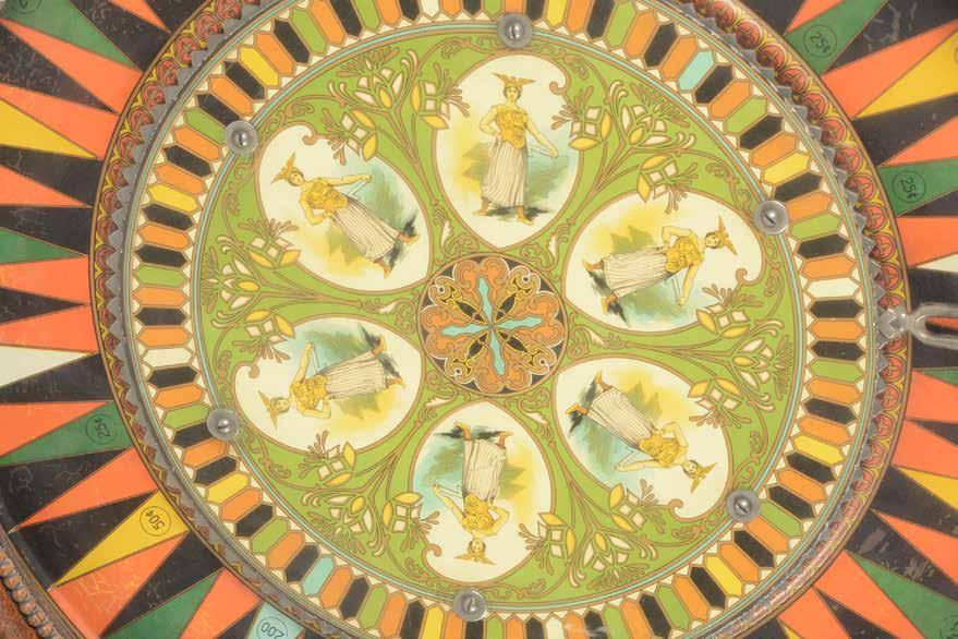 4 - 1/4” Dia. Pre-Prohibition, c. early 1900s. Philadelphia, Pennsylvania. “See No Evil, Hear No Evil, Speak No Evil” three monkeys tip tray. Extremely difficult to find example with beautiful graphics. “Manufactured by Kaufmann & Strauss” marked on bottom edge. CONDITION: Has some wear and scuffing, primarily to bottom face around 6 o’clock, with some other light wear and fade overall. (6.25).