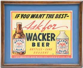 12” Dia. Pre-Prohibition, c. early 1900s. Stegmaier Brewing Co., Wilkes-Barre, Pennsylvania. Hand with four-label bottles beer tray. Harder-to-find tray with beautiful graphics. Manufactured by Chas. W. Shonk Co. Litho, marked on bottom edge. CONDITION: Has some overall wear and scratches. Some slight fade to bottom rim. (7.25). 400 - 800