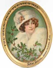 12” Dia. C. 1930s. St. Mary’s Beverage Co., St. Mary’s, Pennsylvania. More difficult-to-find lettered version of St. Mary’s tray, advertising several other beers. CONDITION: Very clean example, solid overall with bright paint and original gloss. Some extremely light wear to face. Some minor scratching to outer rim. The back is also clean. A difficult to upgrade example. (9.25). 400 - 800