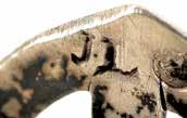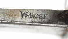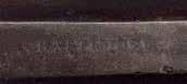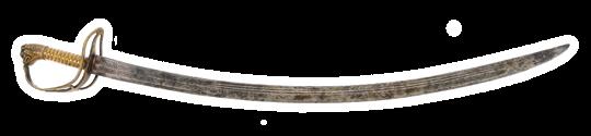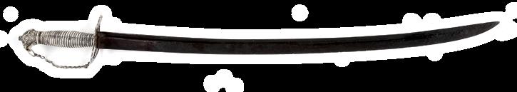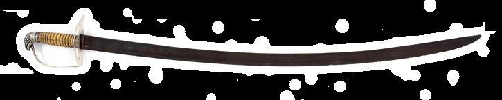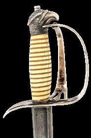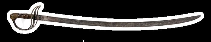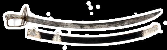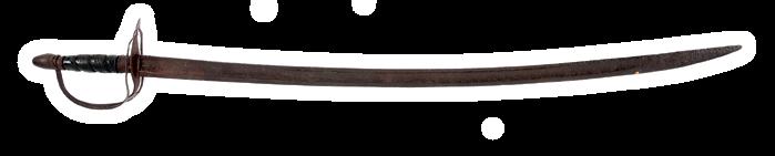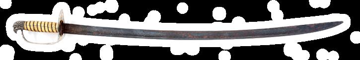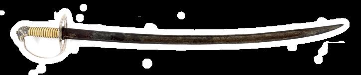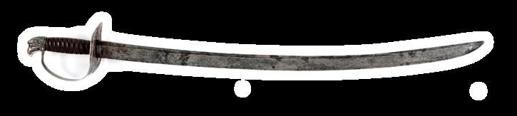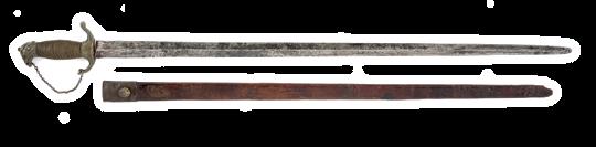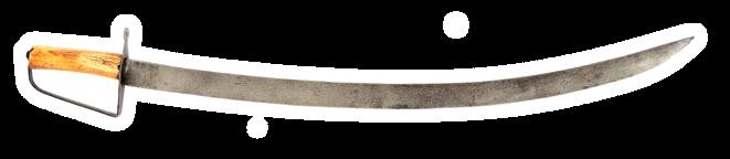 Nice example of a Revolutionary War period cavalry saber which was crafted for use rather than show. The saber features a slightly curved unfullered blade with a flat spine. Interesting diamond-shaped crossguard which terminates with a rounded quillion with piercing in the center. Stirrup shaped knucklebow with sharp angle which travels to the end of the tang, which is pierced and secured with a crude washer capstan. The grip is of hollow bone which is revealed by a small hole at the crossguard. Various tool marks are noticeable on the grip which give it a nice rugged appeal. CONDITION: The blade exhibits a gray patina with some light pitting and areas of delamination throughout its length. Very nice edge with minimal wear. Guard is in similar condition with minor pitting and delamination. The crudely shaped handle exhibits handling wear along with the tool marks and there are a couple insignificant chips. A very nice example of an American manufactured cavalry saber. 1,500 - 2,500