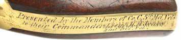 Dan considers himself to be a “southern planter” by profession. He grew up in a hunting and shooting family. There were six uncles on his mother’s side in World War II who gave him army patches and he enjoyed the hunting guns which his father had. He traded his World War II collection for a Civil War musket which his dad purchased for him to shoot. In the 1950s Japanese stamp guns were available for $30 and World War I Enfield rifles for $35 which he traded for Civil War muzzleloaders. He desired a Civil War sword and purchased a Presentation Maryland Cavalry Sword for $35 and traced the patriot’s history which motivated him to begin to trade his antique firearms for Maryland-made or -used antique firearms. This led to his research and 21 published books. In 1965, after the Civil War Centennial, he read the book by Meshach Browning entitled “Forty-Four Years In The Life Of A Hunter” and he began to shoot firelocks for small game, wing shooting and big game hunting. For the hunting record books, since there was no specification for inline, percussion, flintlock or wheellock used in harvesting, he is recorded in the Safari Club and Wild Turkey Federation record books as D. Flintlock Hartzler. This led to the harvesting of four black bears, two grizzlies and three brown bears, four moose of the world, and the two grand slams of turkeys (US grand slam includes four species of turkeys and world grand slam includes four US plus two Mexican varieties). The MACA, KRA and the Company of Military Historians, along with the exciting, rediscovered Maryland history, has fueled his collecting. Hopefully the new owners will be as excited and thrilled with these weapons as he has been.