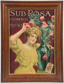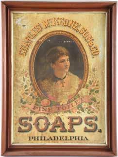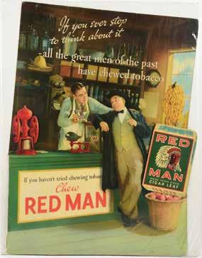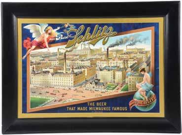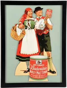 24” x 24”. SST. Unique Falstaff Beer tin lithograph. This piece has a touch-up at the “Falstaff / St. Louis.” emblem on the shield. It has some surface scratching to the face, a bit of discoloration and edge wear. Overall, an excellent graphical piece with beautiful colors and great subject matter. (8.25). 500 - 1,500