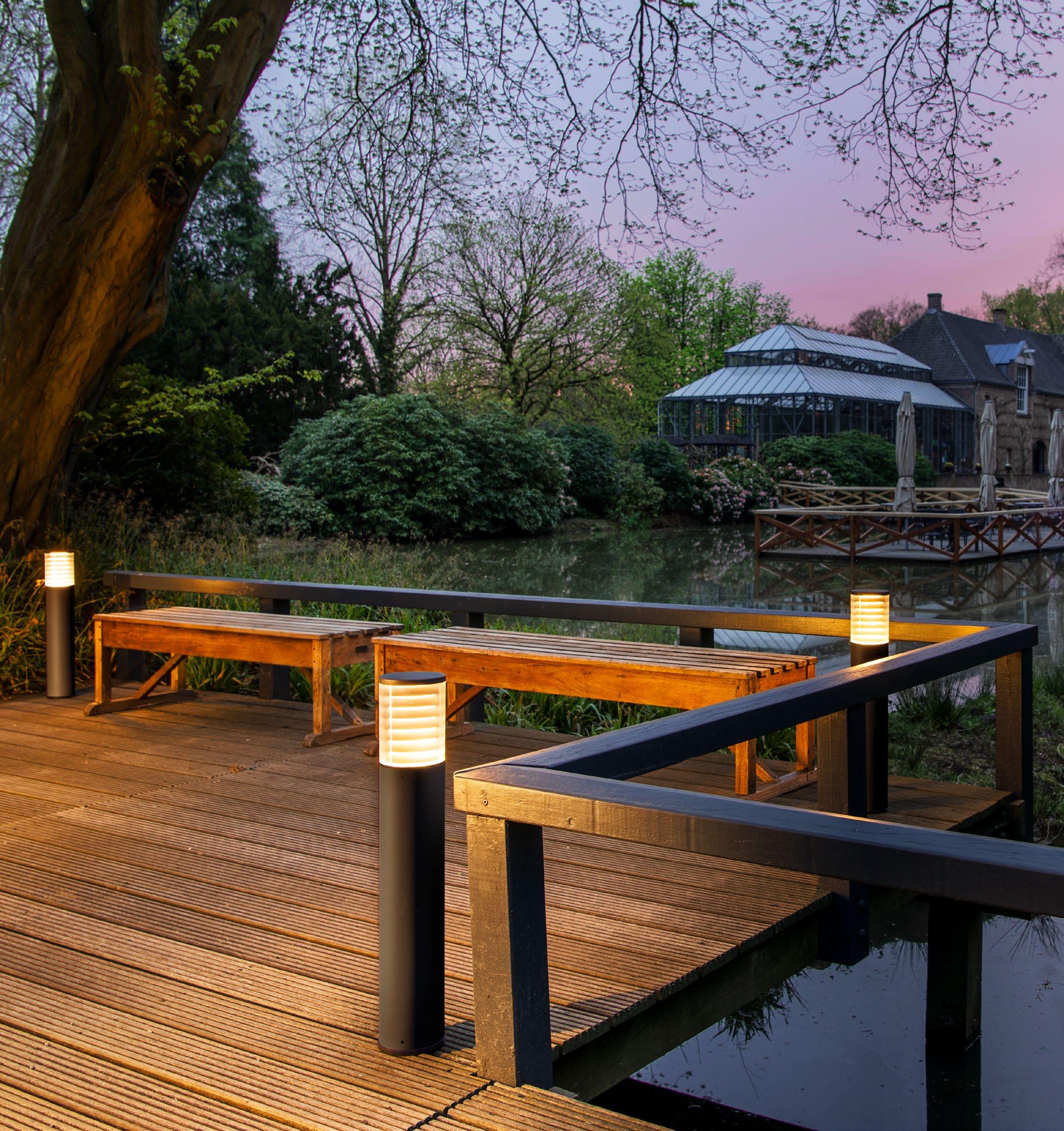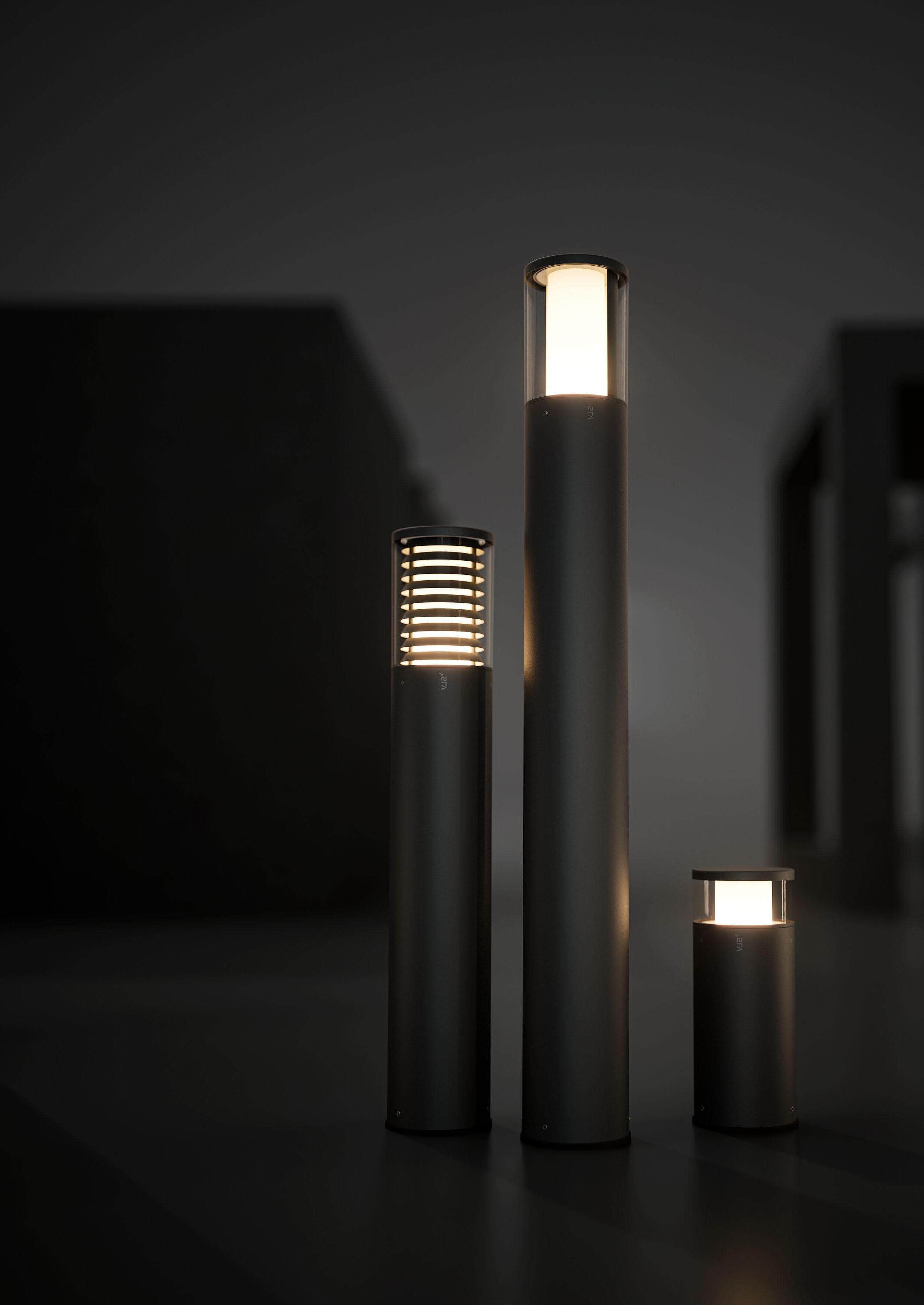 Med det modulære M-POL-systemet kan du lekende lett konfigurere de pullertene du ønsker. Til dette formålet kombineres det tre høyder av pullert-sylinder og tolv LED-enheter med tre lysegenskaper, to styringsmåter og to fargetemperaturer. Enten i opphøyd eller flat form, med avskjerming for fantastisk lys, homogen og diffusert utstråling eller blendingsfritt ved hjelp av integrerte lameller. Enten med 2700 eller 3000 Kelvin, som AV/PÅ-versjon eller dimmebar med DALI: Lysplanlegging blir mer spennende og samtidig lettere.