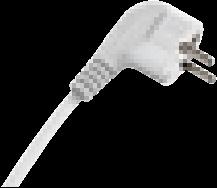 2,5 m strømkabel og jordet støpsel tilgjengelig i sort og hvitt