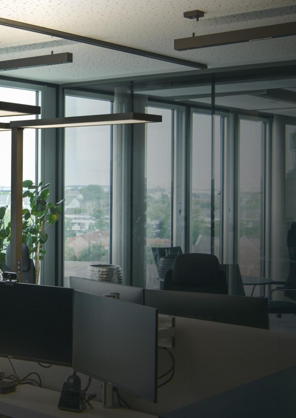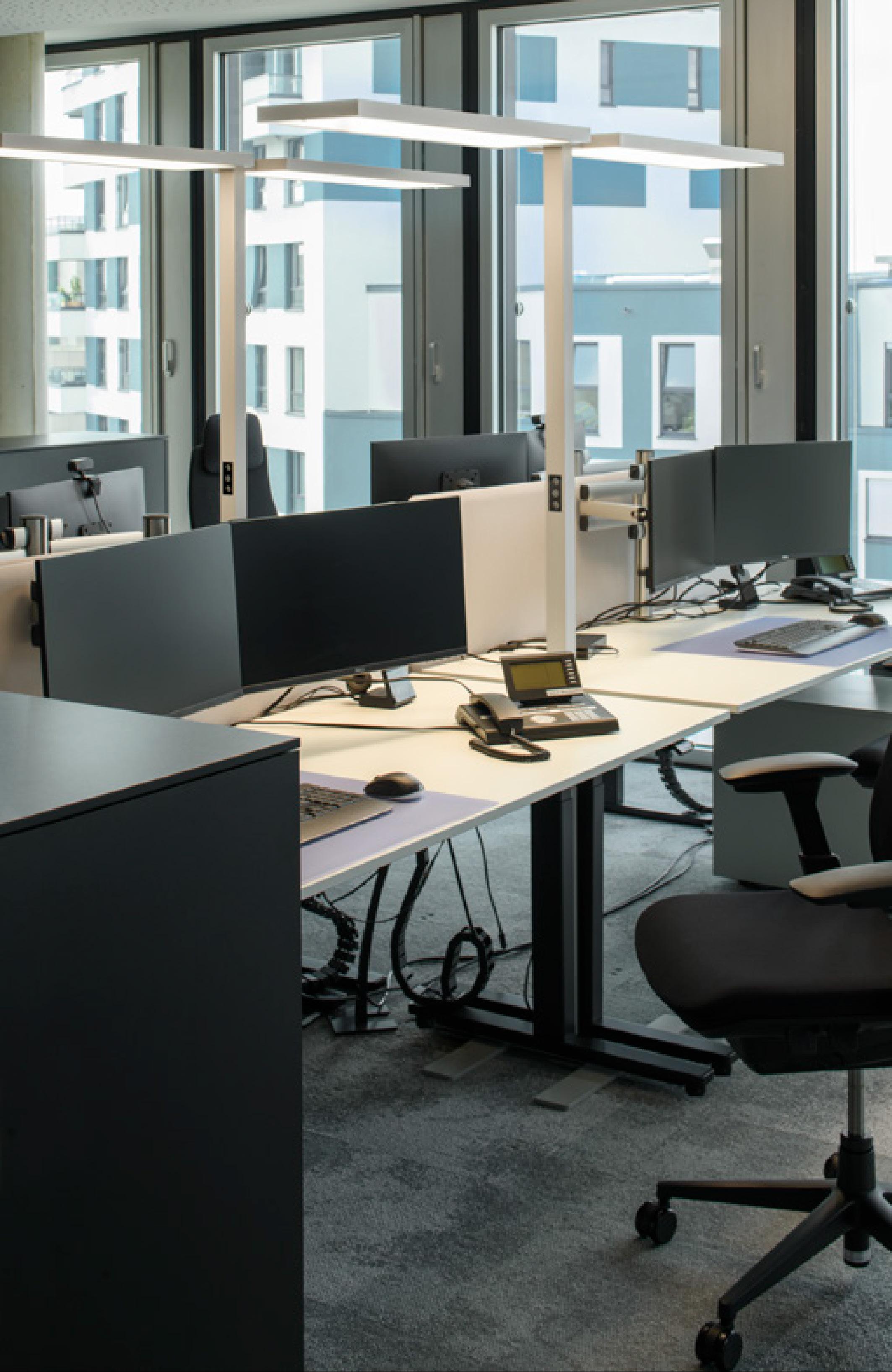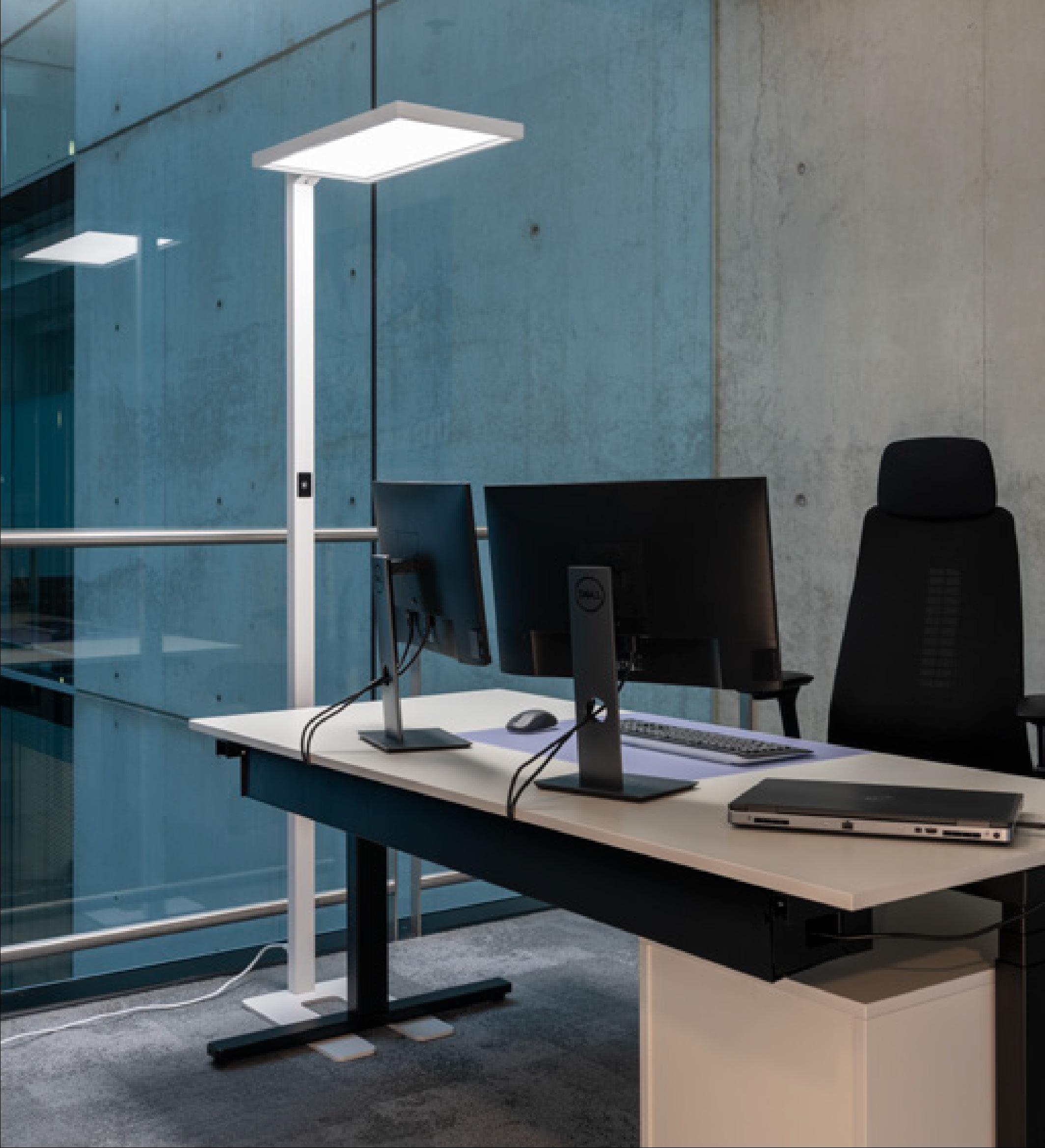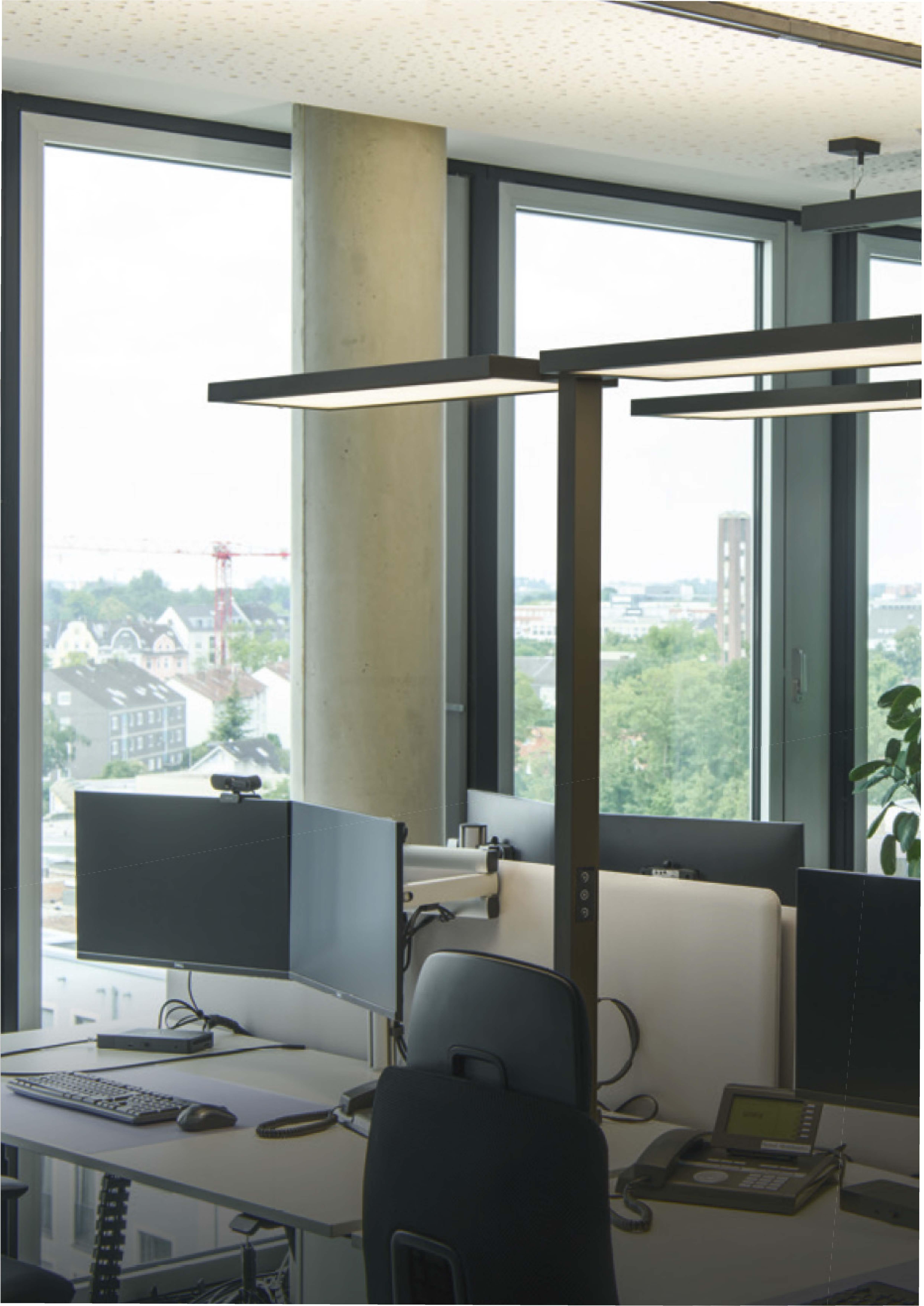 God belysning på arbeidsplassen er avgjørende og krever omtanke. En standardisert og blendfri belysning av både hele rommet og individuelle arbeidsområder legger til rette for vedvarende konsentrasjon og mindre tretthet. I tillegg må det være enkelt og raskt å tilpasse lyset ved skiftende arbeidsoppgaver eller lysforhold, slik at man alltid møter nye behov