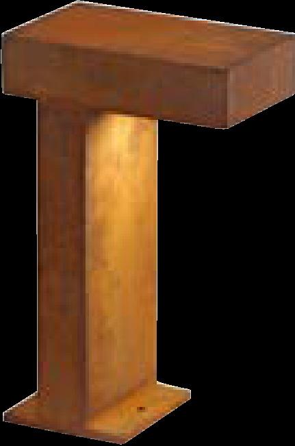 Den som ønsker å perfeksjonere det rustne inntrykket kan velge den L-formede RUSTY ® PATHLIGHT. Veilampen preges av sin rettlinjede design. Den gir blendingsfritt lys som gjør det enklere å orienere seg i mørket. I tillegg til LED-varianten, leveres RUSTY ® PATHLIGHT med GX53-sokkel, som passer til lyskilder på maksimalt 9 watt. Enegi effiektiv og holdbar –og med de med følgende skruene er RUSTY ® PATHLIGHT også raskt og sikkert montert.