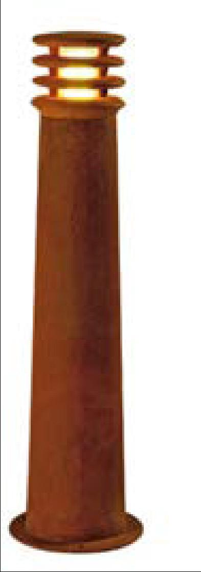 RUSTY ® CONE minner om svunne, maritime tider. Likevel passer de perfekt inn i moderne arkitetur. Som sokkel- eller pullertarmaturer er de utrolig allsidige. Takket være størrelsen på lampeglasset, avgir de mye lys. Universelle unikater som blir lagt merke til. Enten de står på terrassen, i hagen eller i oppkjørselen.