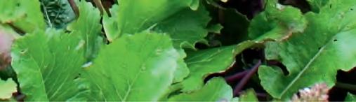 in cooking. Also in this bed is red-veined sorrel, a perennial plant that comes up every year. e very young leaves can be added to salads to give a slight lemony tang. Older leaves can be cut and cooked like spinach. Add a viola for their edible owers and you have an interesting little productive corner.