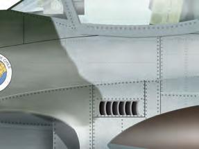 Powered by a single J-33-GE-9 jet engine mounted centrally in its fuselage, the production model Shooting Star was aerodynamically clean and was therefore able to reach an impressive 536mph in level ight at 5000ft – though only when fully painted and without wingtip fuel tanks.