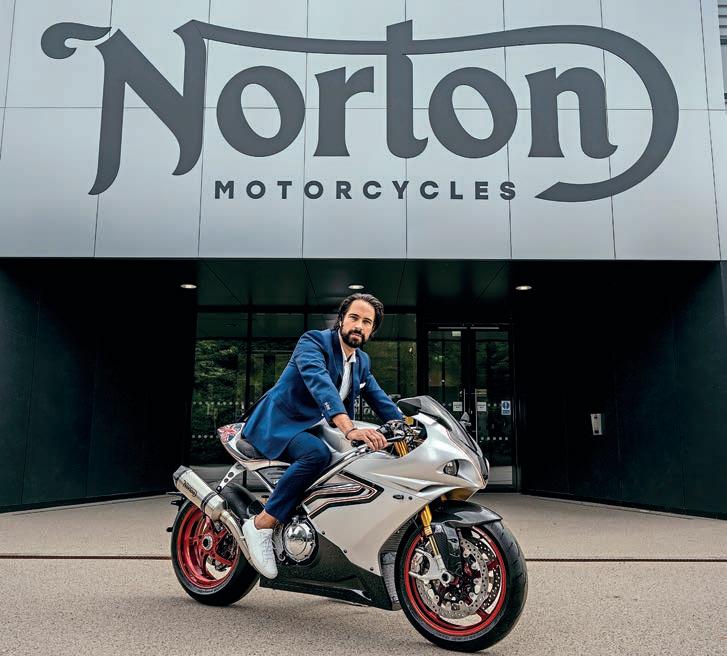 Gladwell isn’t your typical bike rm boss. He was an of cer in the Scots Guards and came to Norton from Saatchi, where he’d worked on developing luxury brands like Chanel, Gucci, Burberry and Breitling – as well as helping launch Jay-Z’s cologne range… He’s been riding bikes for years though, and currently owns an MV Agusta Turismo Veloce and a Norton Commando 961, so he knows what a bike brand needs to do.
