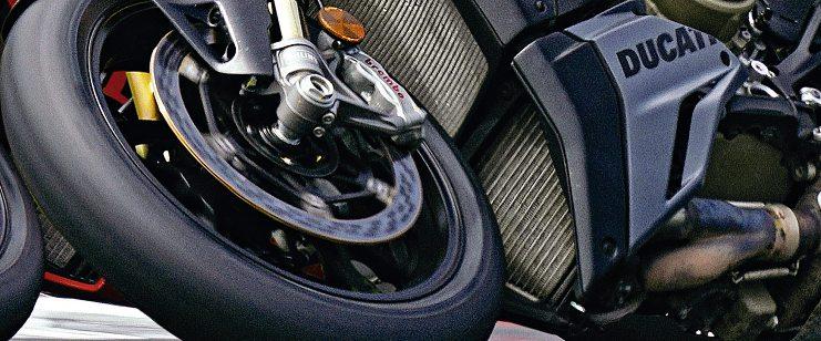 There’saByBrefour-piston radialcaliperupfrontoneachbike, witha300mmdiscontheSpeed anda320mmdisconthe