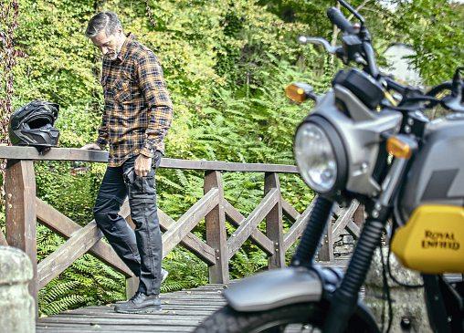 Theselookjustthejobfor hotdays:apairofriding combat-stylejeanswith zip-offlowers,soyoucan ridetoworkortoanevent, fullyprotected,thenzipoff thebottomstogiveyou above-the-kneeshortsto cooldown.They’remade fromKevlar/aramid reinforcedmaterial,whichis AAratedforabrasion protection,andalsocome withLevel2CEhipand adjustablekneearmour.They havesixpocketstostash loadsofstuffin,andcomein blackorbeige.