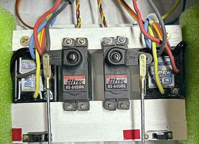 Analuminiumstrapandacoupleofbolts securedthemotortothepylon(see Photo 6).Myplanwastohingetheruddertothe rearofthemotorpylon,sosimplestwayto installtherudderservowasintoacut-out throughthedeck.Tokeepwateratbay,a coamingwasaddedaroundtheedgesofthe deckaccessopeningandasimplelidbuiltto fitoverit.