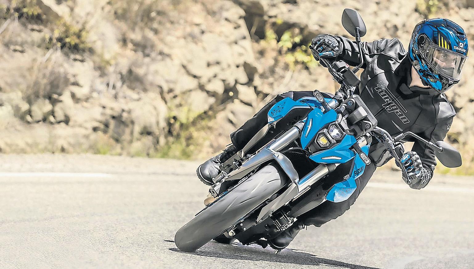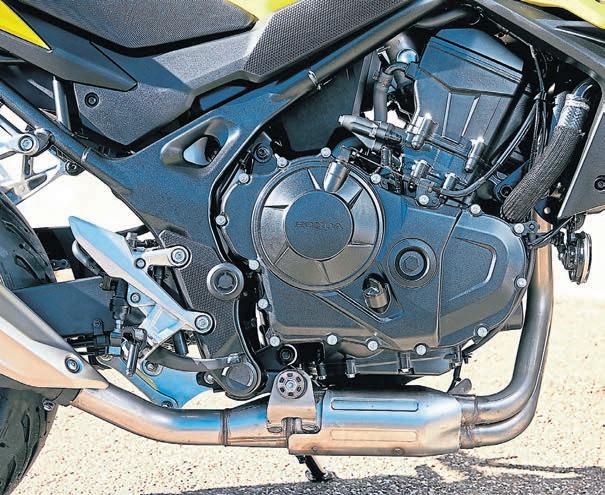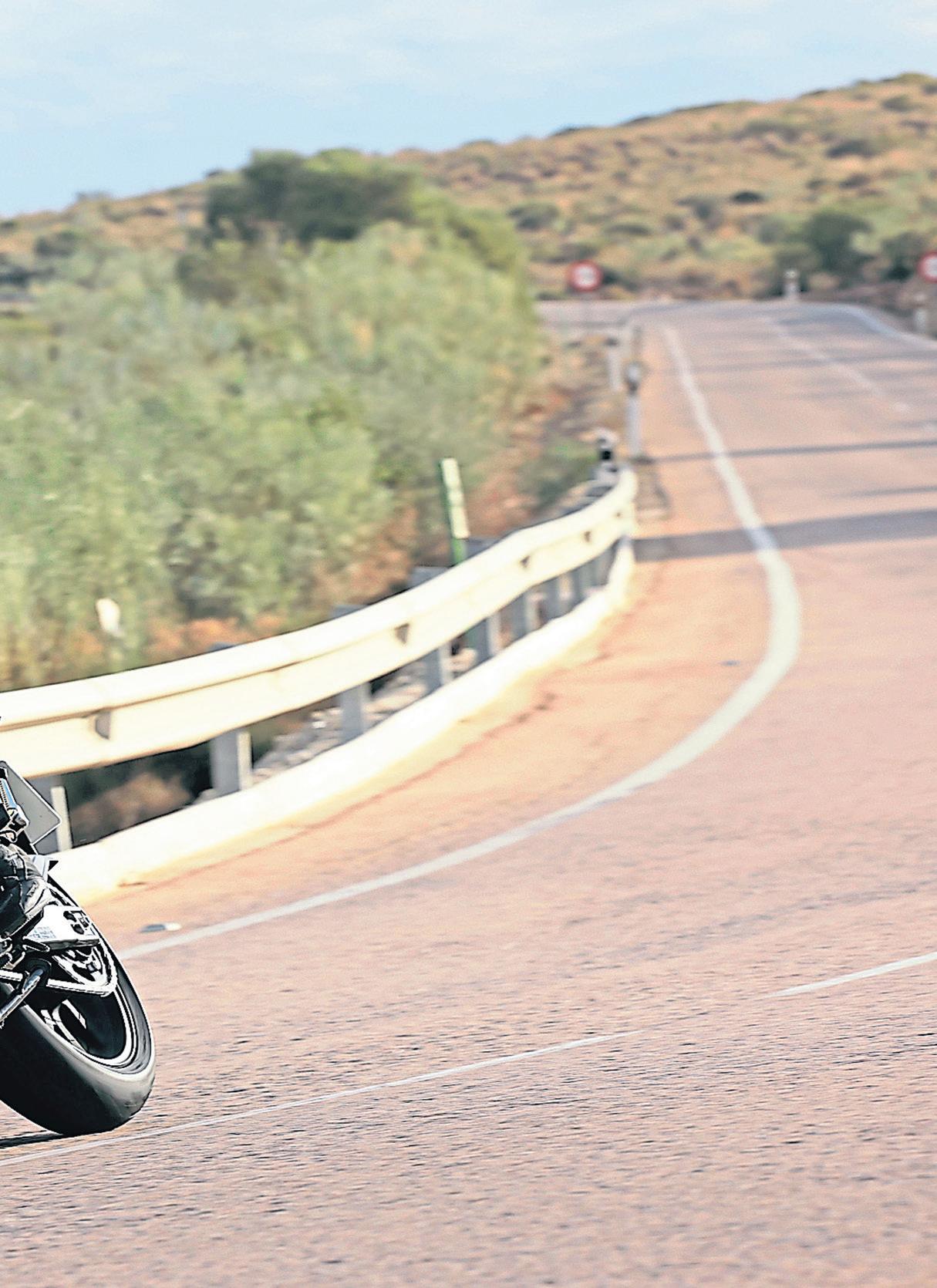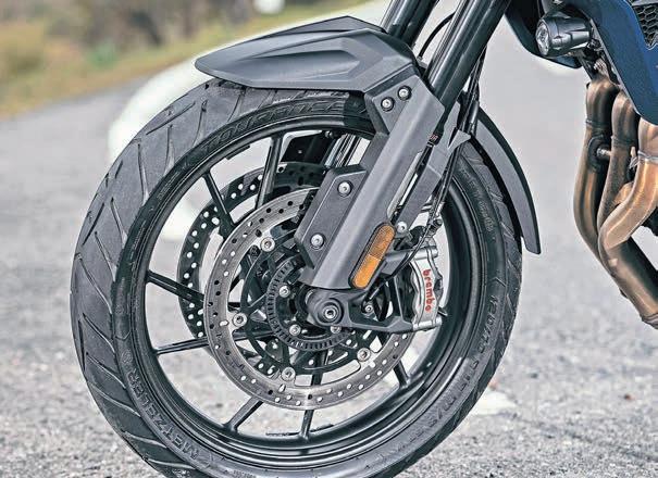 of shape, even when being pushed hard in less-than-ideal conditions on less-than-ideal roads. There’s not even much dive under braking, which is a common foible of more ‘budget’ machines.