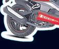 Brakes: (F) single disc, three-piston calliper (R) single disc, Single piston calliper