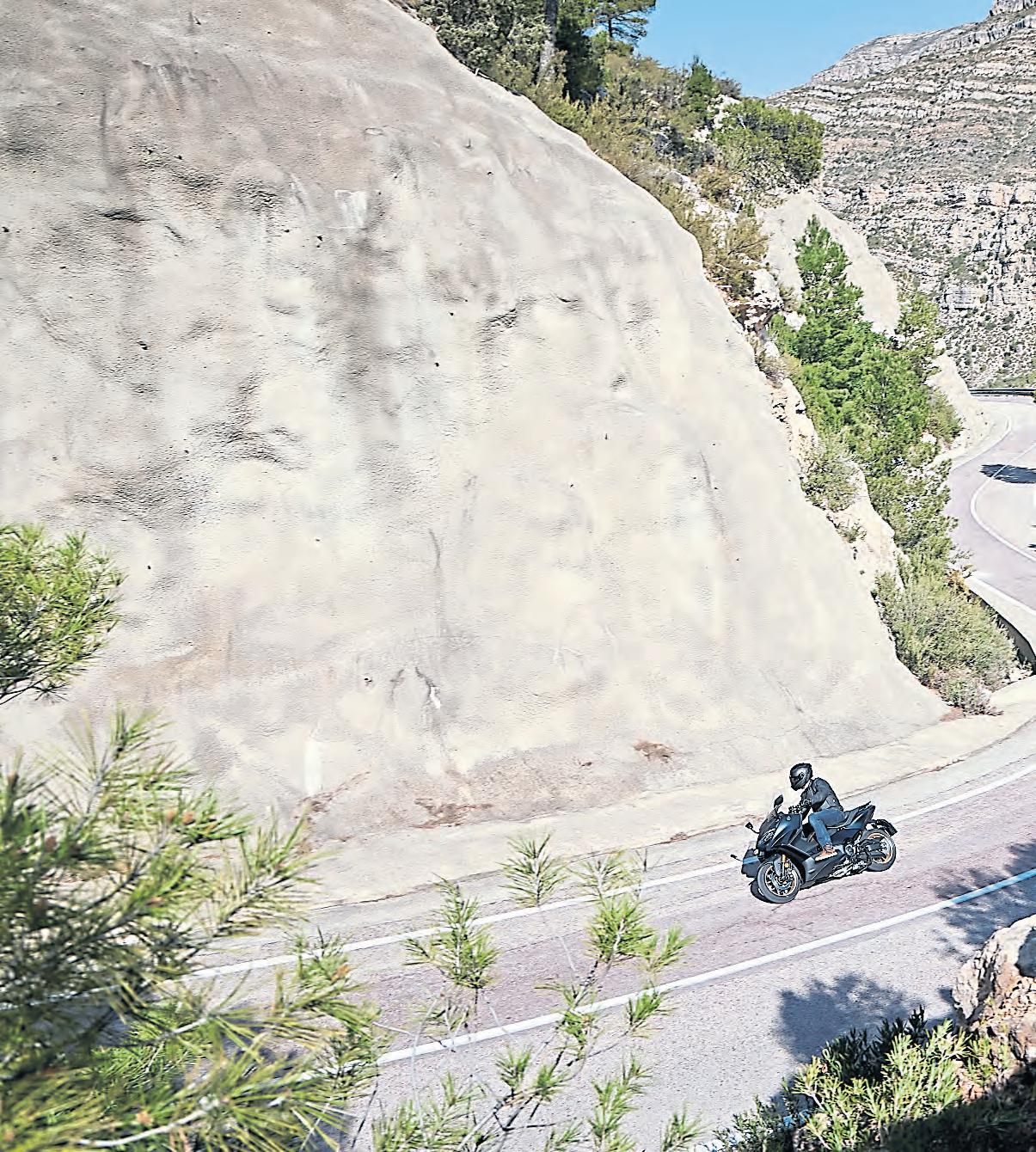 a combined hydraulic rear spring. Stopping is looked after by a pair of 295mm discs up front, while a single 240mm disc takes care of things at the rear. There’s also dual-channel ABS and traction control thrown in. Add a colour TFT dash (with full connectivity), LED lights all round, a USB port and under-seat storage (to stash a full-face helmet), and Peugeot could be onto a winner.