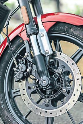It stops well, too, thanks to the large single 320mm disc up front and the 265mm disc at the rear. The gripping’s looked after up front by a radial-type four-piston calliper produced by the popular and proven Spanish firm J. Juan, and it also boasts a plastic shield that you wouldn’t usually find on a bike like this. Oh, and there’s also a quality dual-channel Bosch ABS system. It’s a godsend when the roads are greasy and the conditions are less than favourable, but in truth I never once troubled it.