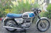 TRIUMPH BONNEVILLE T120R, 1970, 650cc, vgc for a 52 year old bike, matching frame and engine numbers, blue/silver, runs well, photo by phone, £7750 ono Tel. 07887 674467. Hants.