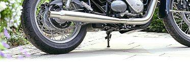 Theengineislumpy sub-20mph.But openthethrottle anditbuildsspeed rapidly;the645cc v-twinwants toworkhard.