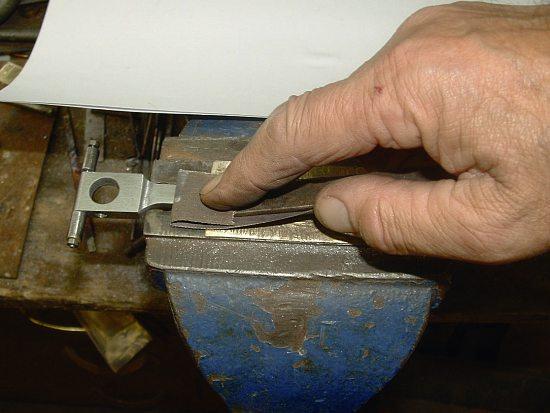 ofpiecesofbrassanglesuch thattheedgecoincidedwith thetopoftheangleandthen youcould leawaytoyour heart’scontent. Photograph 182 showsthemounting. TopolishtherodsIuseda polishingstickmadefroman8 inchlengthof ½ x ⅛ inchblack bar,whichhasroundededges ofcourse,withtwoinchesof theendbentuptoclearyour