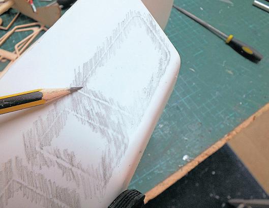 and the fact that the majority of the fit tings aree ither brass or plastic (I haven’tf ound as ingle white metal part). In some instances, however, you may find the cutting marks on the vacuum formed parts cast from the original moulds aren ol ong er as clear as they could be, so here’s is al ittle tip… For better definition, just lightly run ap encil over them, as shown in (Photo 3)