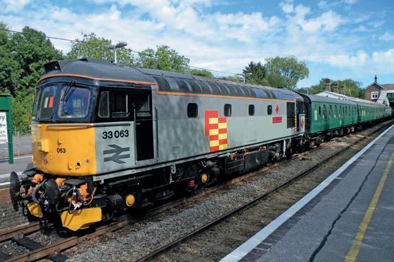 is is a ne example of a beautifully restored Class 33 diesel No. 33063, R.J Mitchell, designer of the Spit re. A total of 98 were built by the Birmingham Carriage and Wagon Co. between 1960-1962 and nicknamed ‘Cromptons’ as electrics were installed by Crompton Parkinson. Now resident on the Spa Valley Railway and seen here at Eridge station in Kent.