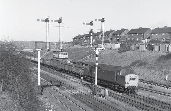 A 1979 photo of Class 37 diesel electric locomotive, 37132, passing through Treeton in South Yorkshire hauling a train of mainly coal. A total of 309 were built between 1960 and 1965 as part of the BR modernisation scheme and were nicknamed ‘tractors’ because of the industrial sound of the engine.
