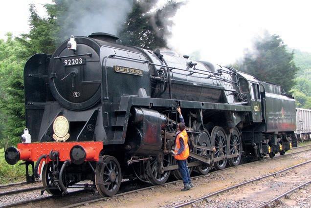 BR Standard Class 9F, 2-10-0 No. 92203 Black Prince, built at Swindon in 1959 just before Evening Star, the last 9F and the last steam locomotive to be built for BR. It is seen here in preservation at the Cranmore 150 Quarry Gala Weekend, Somerset, in June 2008.