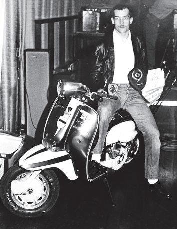 Hisapprenticeshipinhanging around with the localSuedeheadswas nowcompleted,but a newone star tedatBritish Leyland. Mark would beginhis workinglifethere,whentheyweren’t on strike,and it gave himthe chance to tr y outaGP. It wasa200 Electronic belonging to afellowapprentice, andheborrowedit during lunchbreakstomakea quickdash home.Insured?Definitely not, butthiswas a time when fewgavethoughtstosuchthings, especially if it wasn’t your scooter. However, this couldn’t go on forever, andashewas now earninga wage he couldsaveup, buyone and be fullylegal